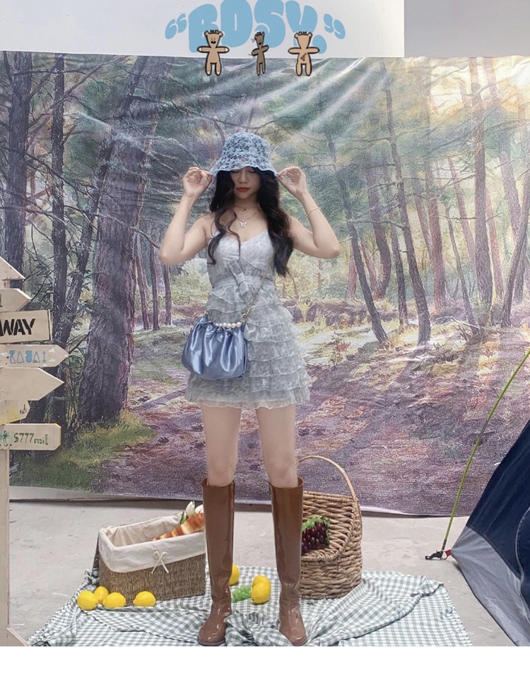 Bandarsaya حبال الفستان الفهد الأخضر مقابل الخصر ، تنورة رقيقة ولطيفة للطلاب الخارقين